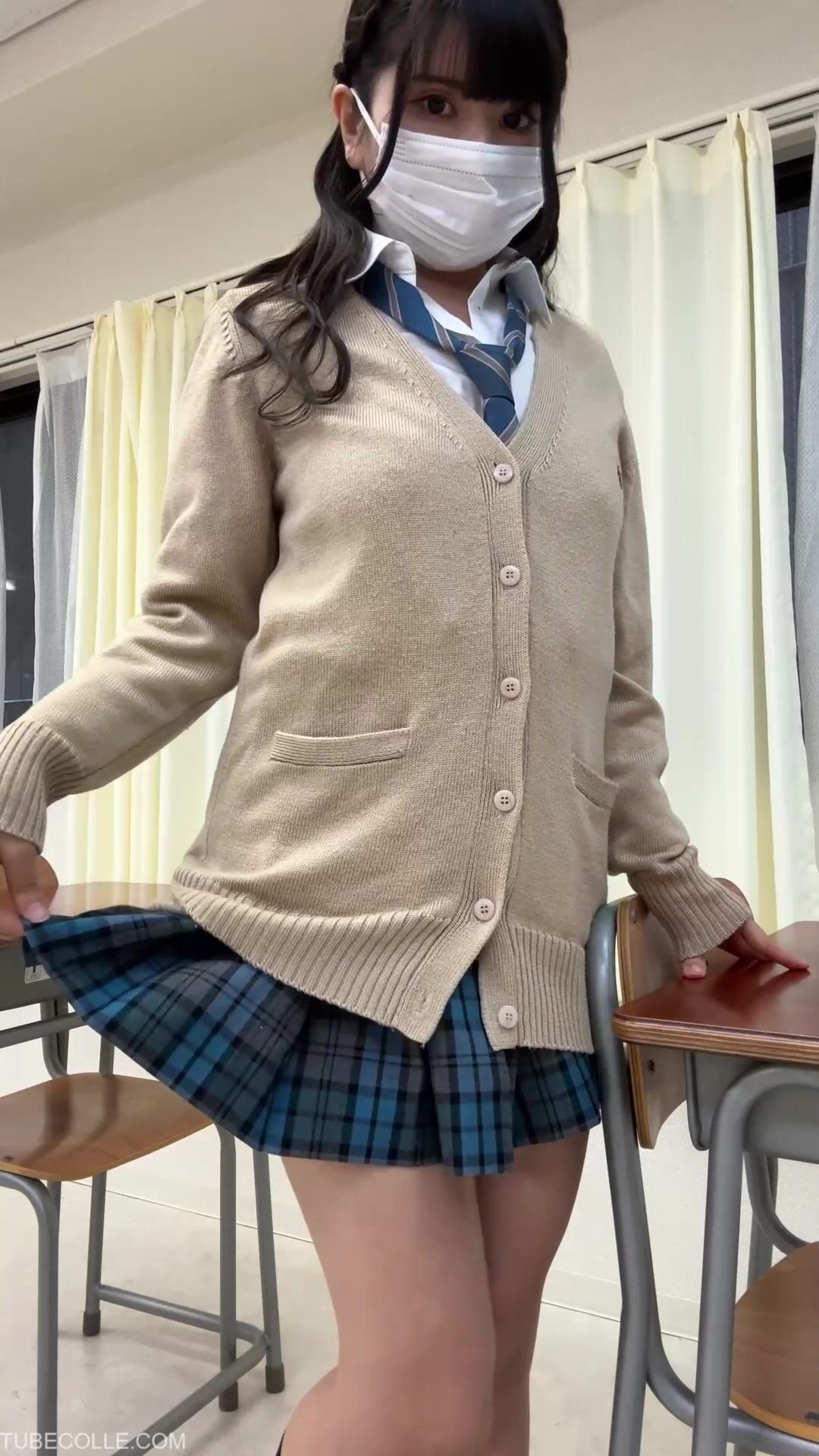 ノーブラ♡すぐ近くに人がいる教室で超ミニスカ青チェ自撮りしてたらまた食い込ませすぎました♡ voyeur jp