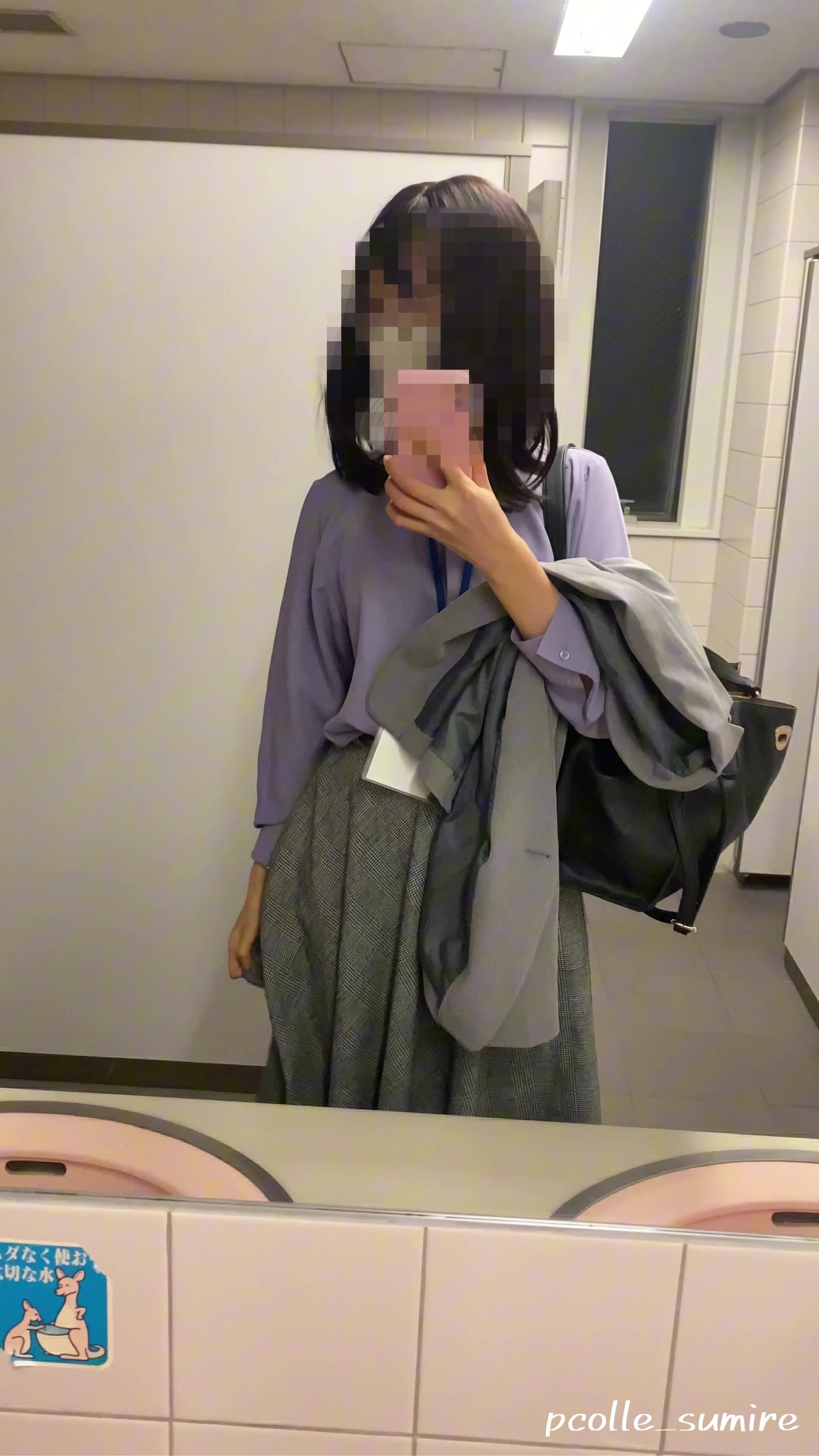 出入りの多いトイレで黒ストッキング脱いで大胆に露出自撮り ♡ voyeur jp