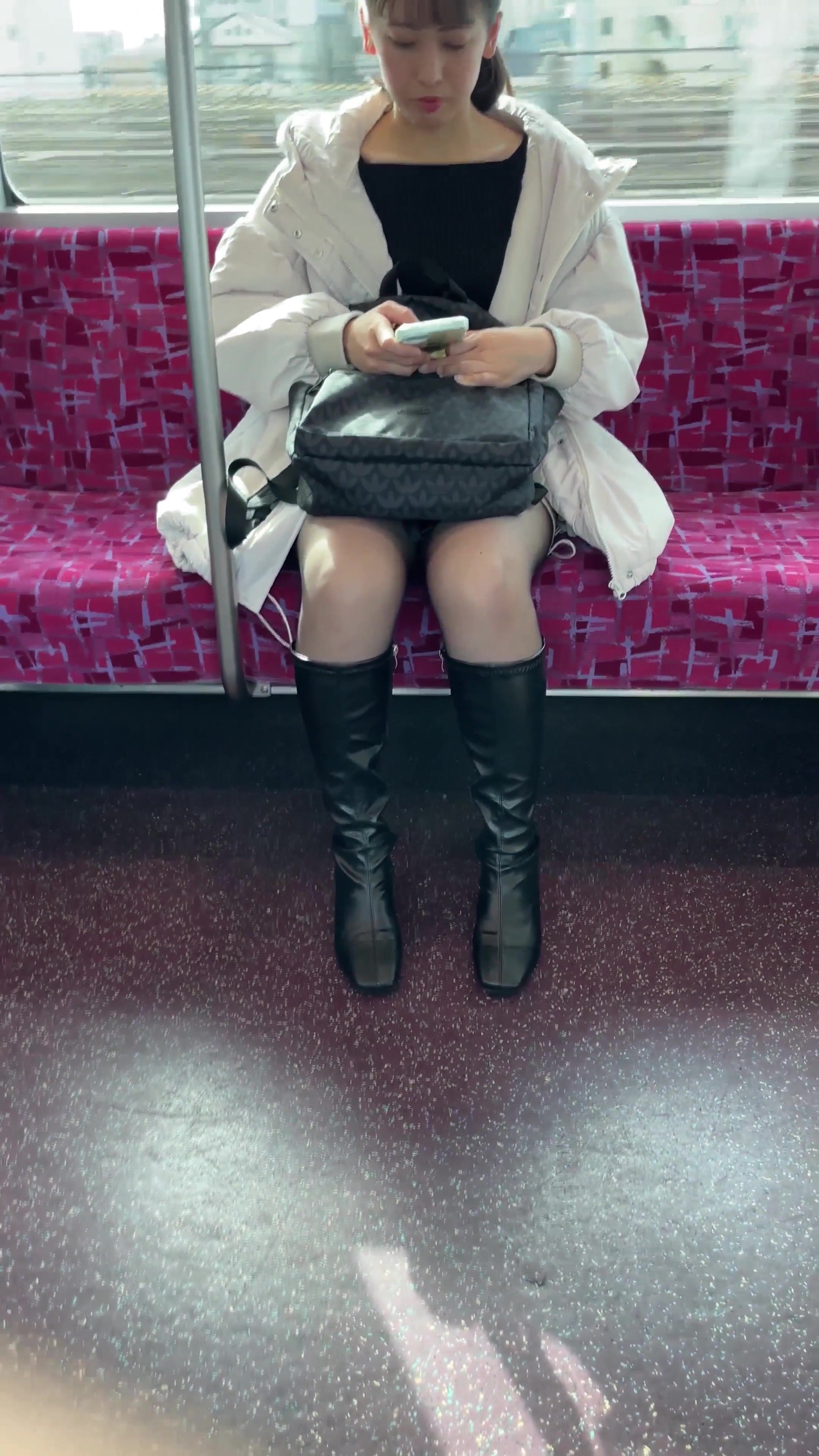 [電車対面パンチラ007] 再会は黒ストでした voyeur jp
