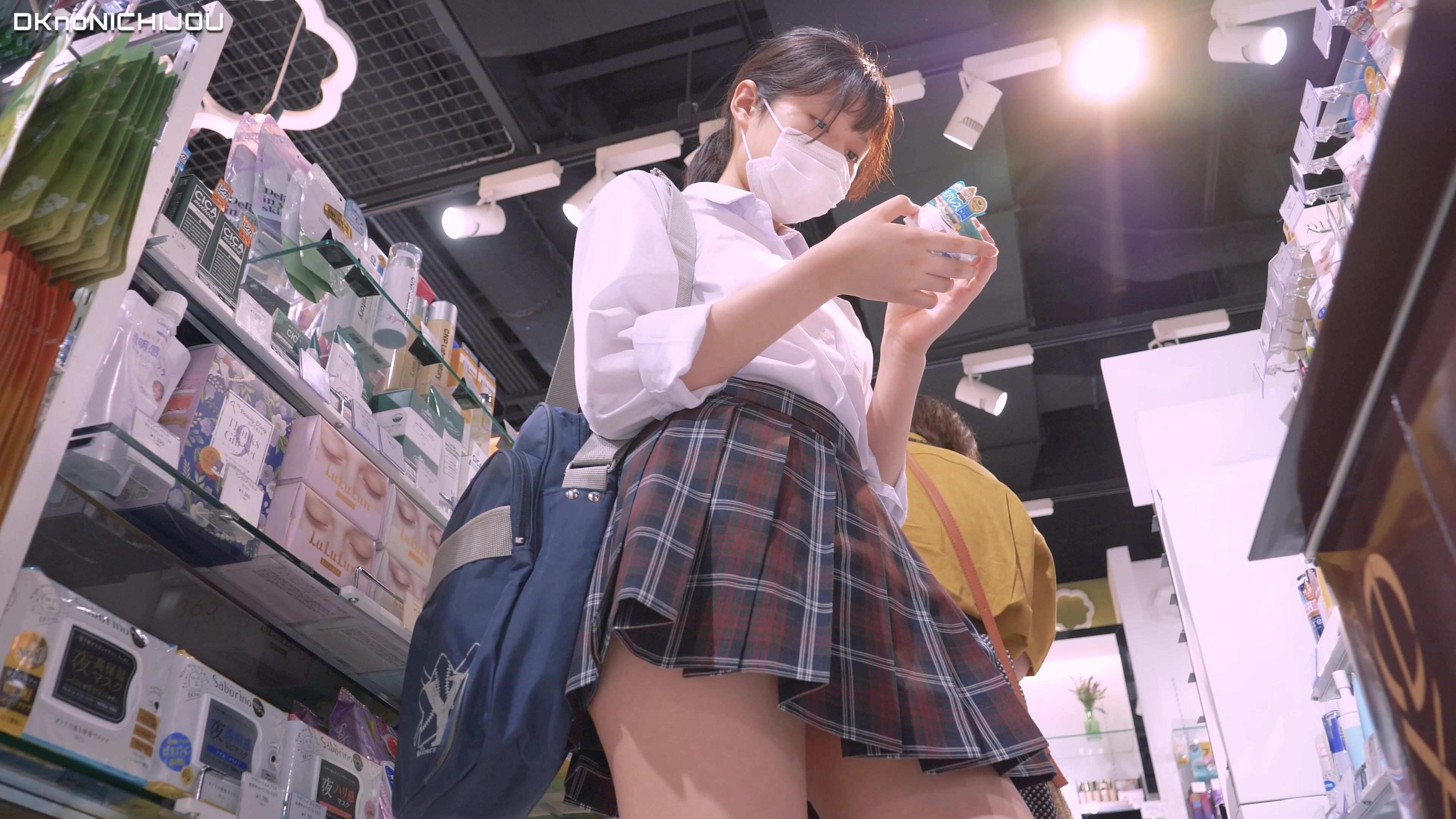 [4K]えちえちJK盗撮No.214#青チェ 愛嬌満点美少女ロリフェイスJKの開脚プリケツを追いかけまくる! voyeur jp