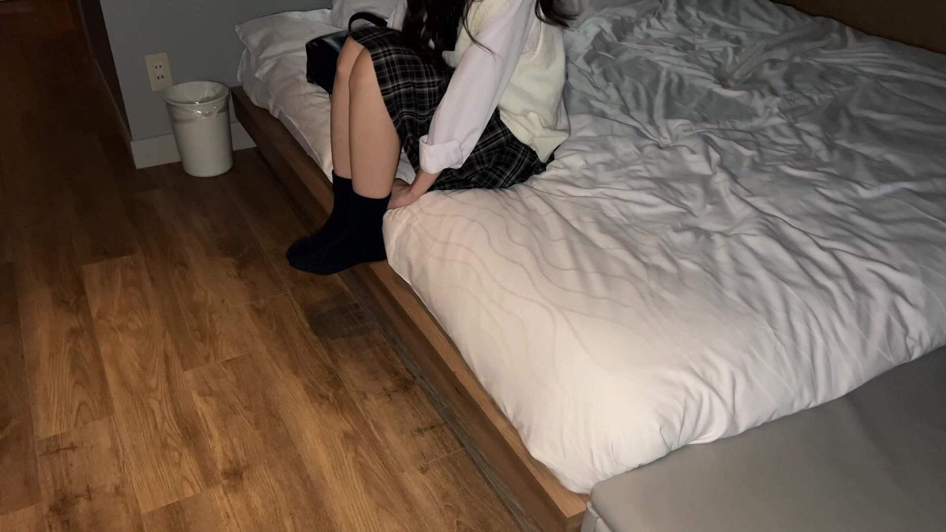 【再販】16時間着用【個人撮影】 発育良好女子 _授業サボってやって来たMサイズのライトグレーぱんつちゃん(シミ有り)とパパ活 jav jvip