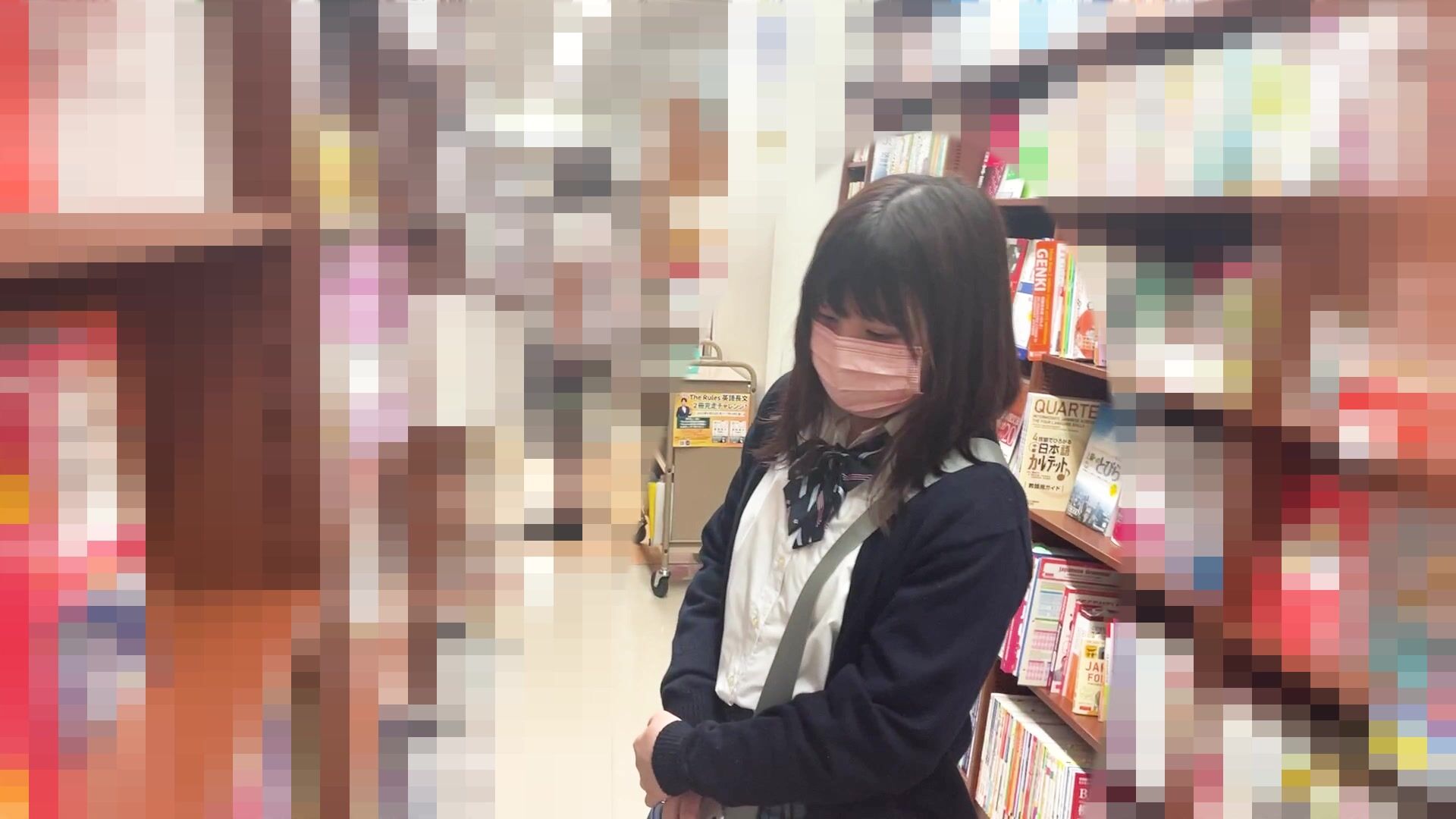 黒髪清楚JK ノーパン ピンクマンコ。薄い恥毛とパックリ陰唇をローアングル【パンチラ盗●】 voyeur jp 1
