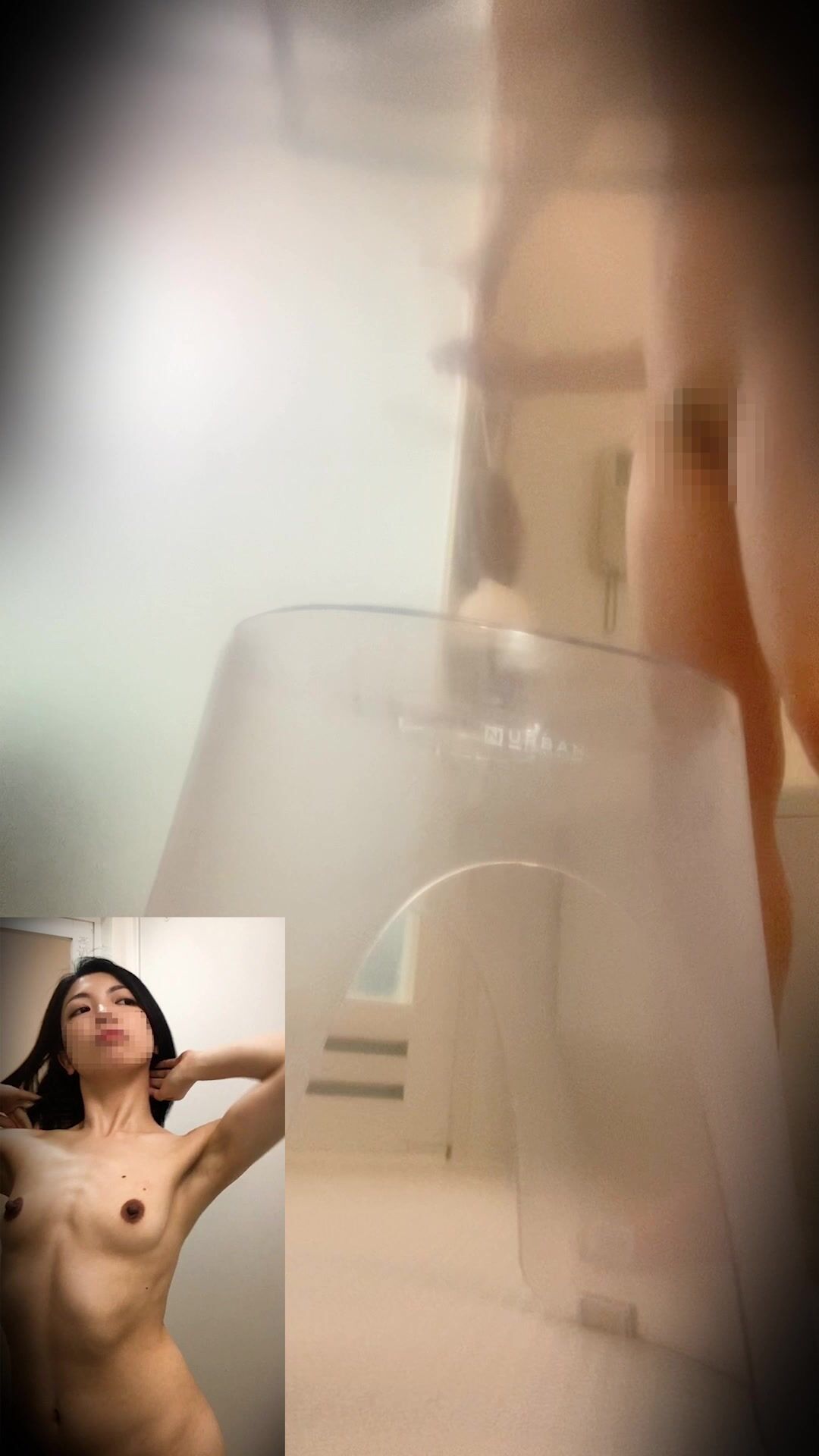 【風呂】黒髪ショートの美巨乳女子大生神乳・剛毛マンコを入念に洗浄【民泊隠し撮り】 voyeur jp
