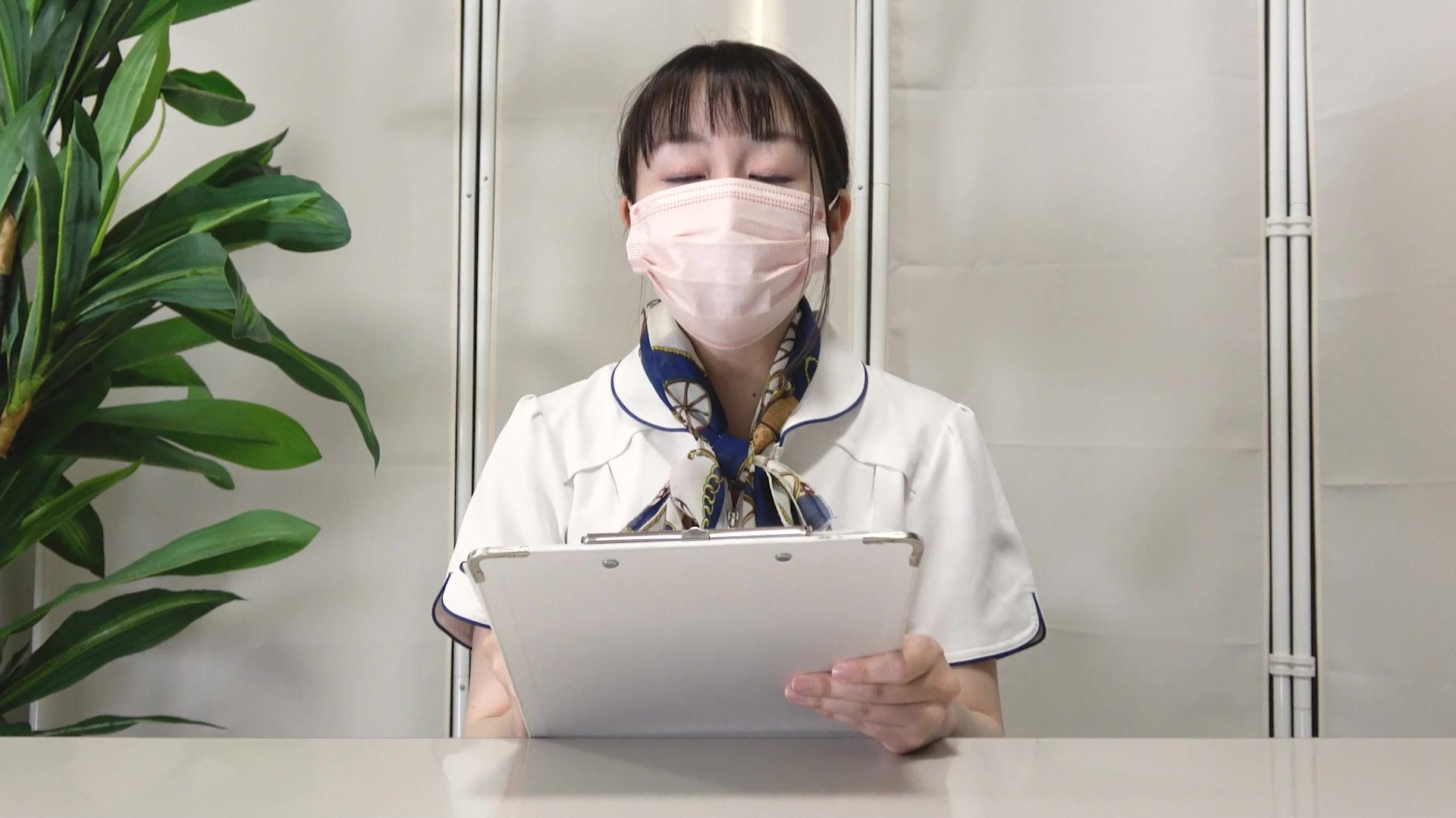 金髪美人歯科助手 ローアングルから見る純白Tバックと美乳に大興奮♡【開脚ナース服】 voyeur jp